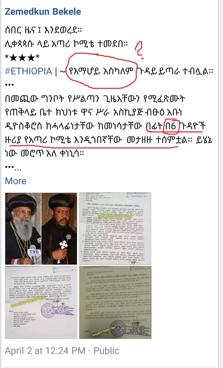 እዚህ ላይ ውድ የቅድስት ቤተክርስቲያን ልጆች ለመሆኑ የአስተዳደር ጉዳይ ይበልጣል ወይስ የሃይማኖት ጉዳይ? መልሱን ለአንባቢያን ትቼአለሁ!