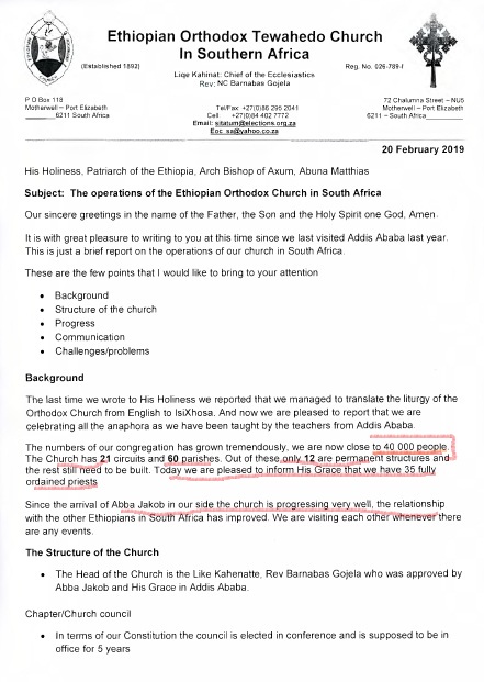 - ገባሬ ሠናይ ተቋም ኾና በደቡብ አፍሪቃ መንግሥት የተመዘገበችው ቤተ ክርስቲያናችን፣ ላለፉት 8 ዓመታት ለፈቃድ ሰጪው አካል/ለደቡብ አፍሪቃ ሶሻል ዴቨሎፕመንት ጽ/ቤት/ የሒሳብ ሪፖርት አላቀረበችም