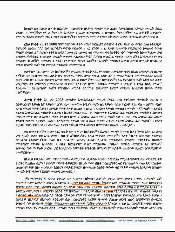 - መቼም በእኛ ቤተክርስቲያን ምዕመኑና ካህናቱ(አገልጋዮቹ) ያልተገናኙባት ስለሆነች ያለ ሊቀጳጳስ ከዚህ በፊት ለሁለት ዓመታት አሁን ደግሞ ከ4 ወር በላይ እድትኖሩ ሴራ የሰሩትን አባቶችና ወንድሞች እውነትን ብቻ በመያዝ ከቂመነኝነት በጸዳ ሁኔታ እንድትፋለሙ ያስፈልጋል፡፡