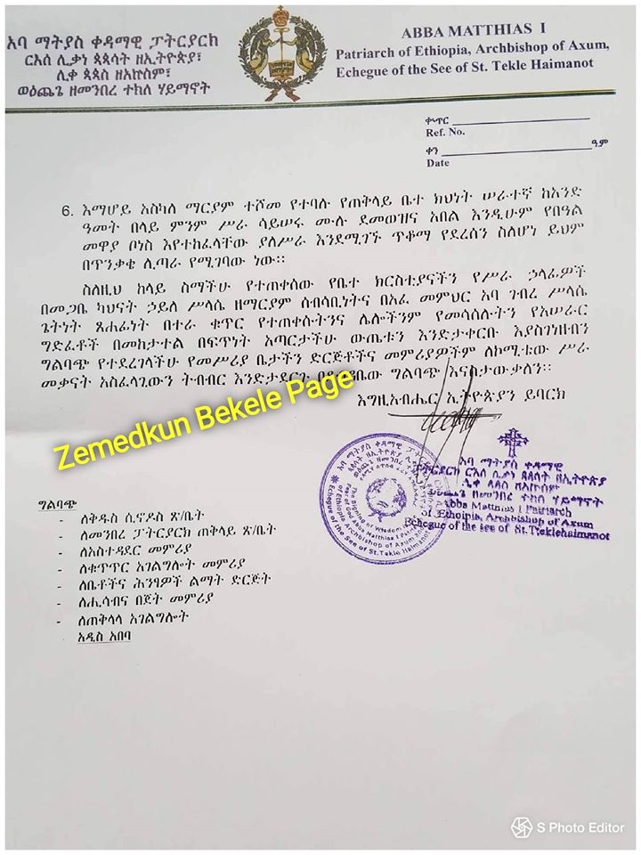 ከዚሁ ጋር በተያያዘ ፓትርያርክ አቡነ ማትያስ የማጣራት ሂደቱን አጠናክረው ቢቀጥሉ ሌቦችና ወንበዴዎችን ከቤተክርስቲያናችን ለማጽዳት ይረዳል ባይ ነኝ፡፡