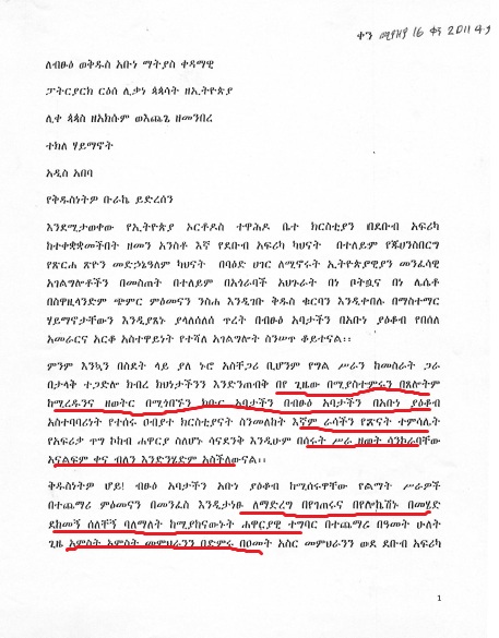 በማለት የጻፉት ደብዳቤ ለዚሁ ማሳያ ነው፡፡